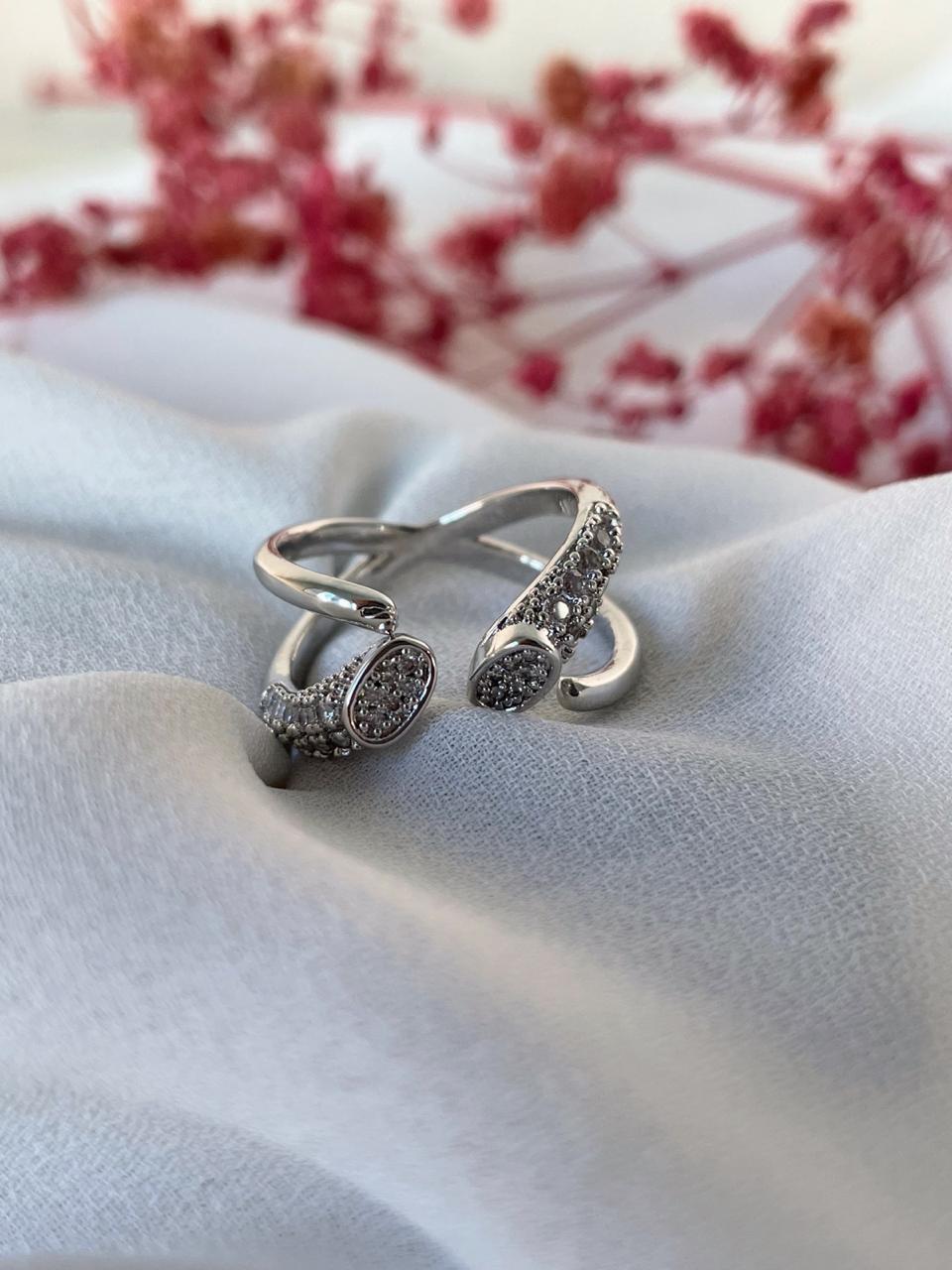 Este anel parece ter sido desenhado para envolver o dedo com a delicadeza de um gesto suave, unindo brilho e leveza em uma peça que encanta desde o primeiro olhar. Sua estrutura em metal hipoalergênico, banhado em ródio, cria um acabamento luminoso que reflete a luz com discrição sofisticada, enquanto as pequenas zircônias cravejadas se agrupam em cada extremidade como minúsculos pontos de estrelas que se encontram no meio do caminho. O formato aberto permite um ajuste confortável, abraçando o dedo com a sensação elegante de algo feito para acompanhar cada movimento sem apertar ou incomodar. E, para preservar todo esse encanto ao longo do tempo, basta evitar o contato direto com água, perfumes e cremes, guardando a peça em local seco sempre que não estiver em uso. Assim, o anel mantém seu brilho sereno e seu charme eterno, pronto para completar desde produções minimalistas até composições mais elaboradas com a mesma naturalidade encantadora.