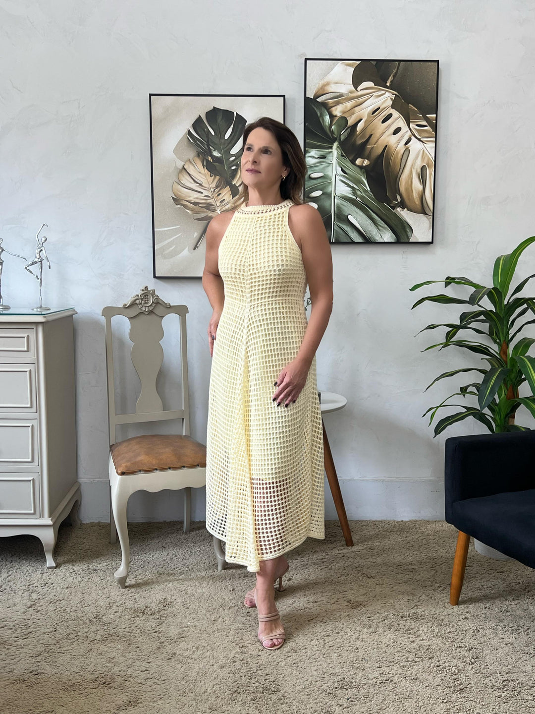 Vestido Alice Rendado Midi - Amarelo