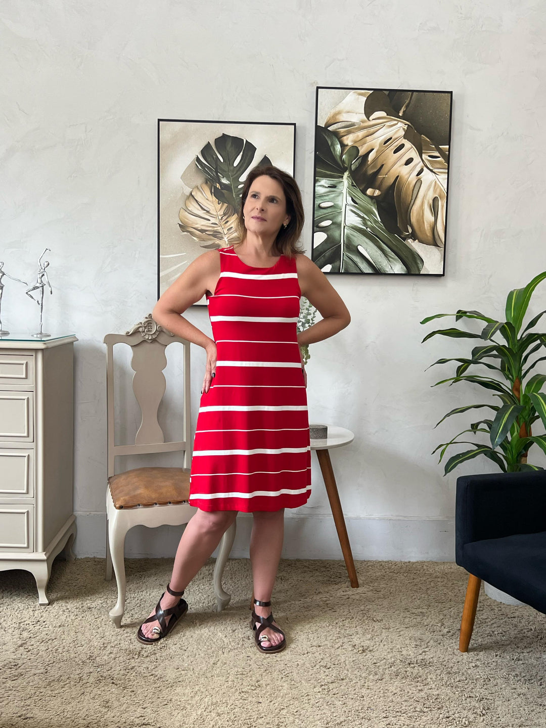 Vestido Heloísa Regata Evase - Vermelho/Branco