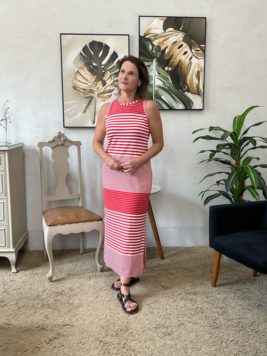 Vestido Eliane Regata Longo - Vermelho/Branco