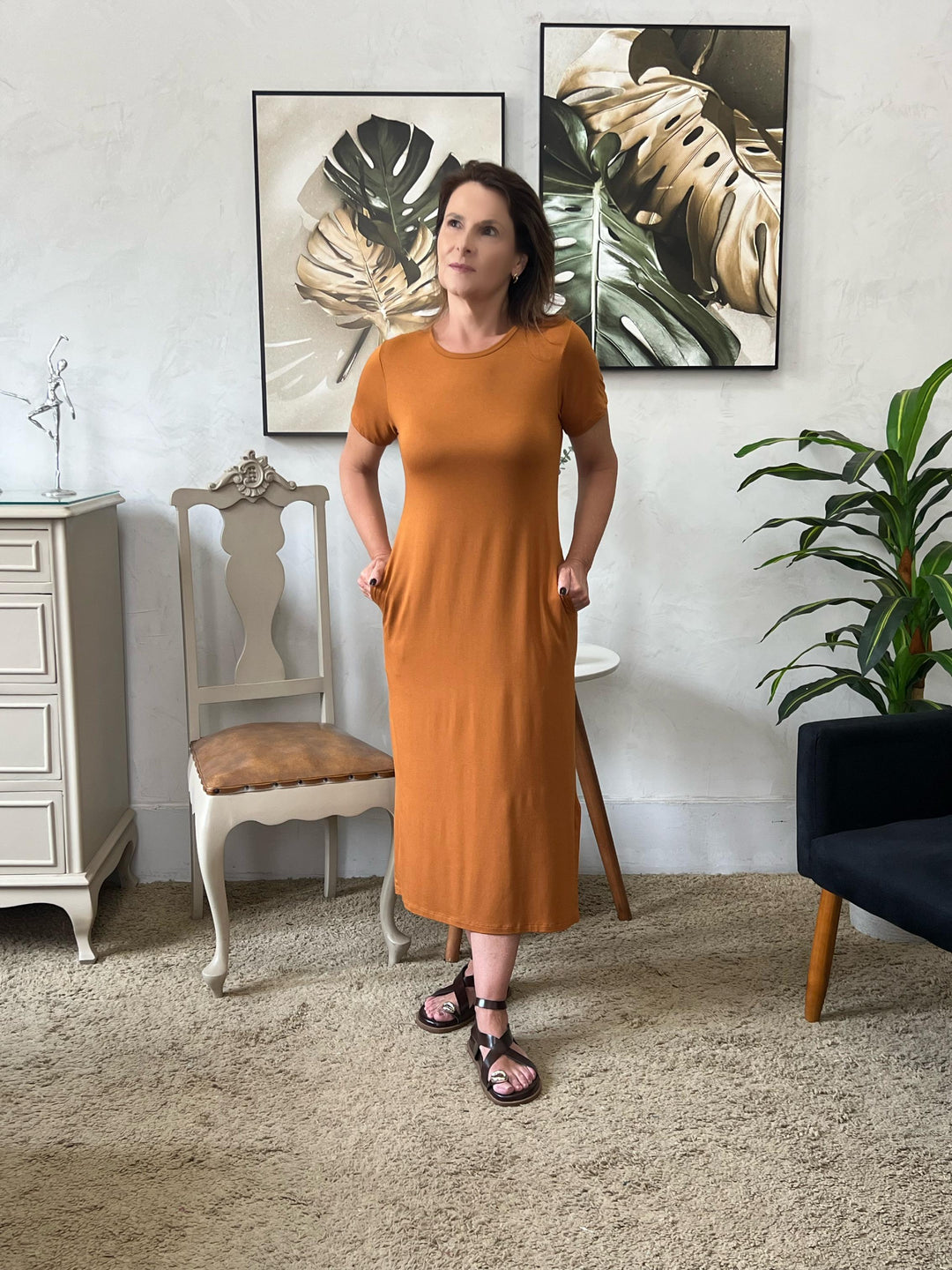 Vestido Maura Midi em Viscolycra - Caramelo