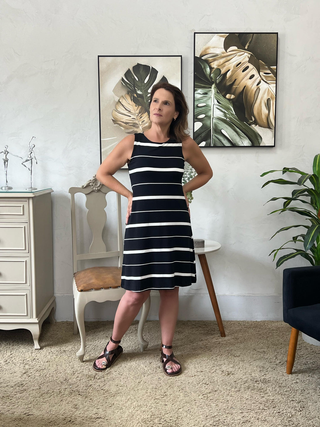 Vestido Heloísa Regata Evase - Preto/Branco